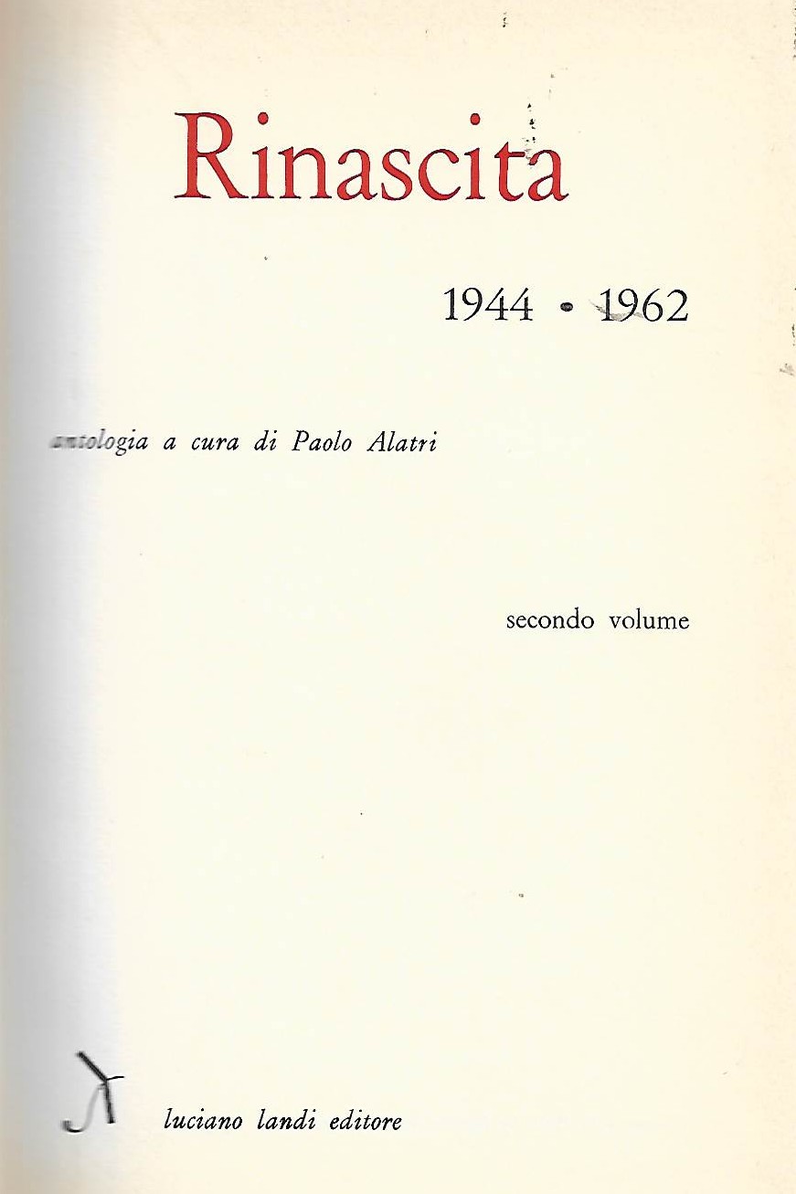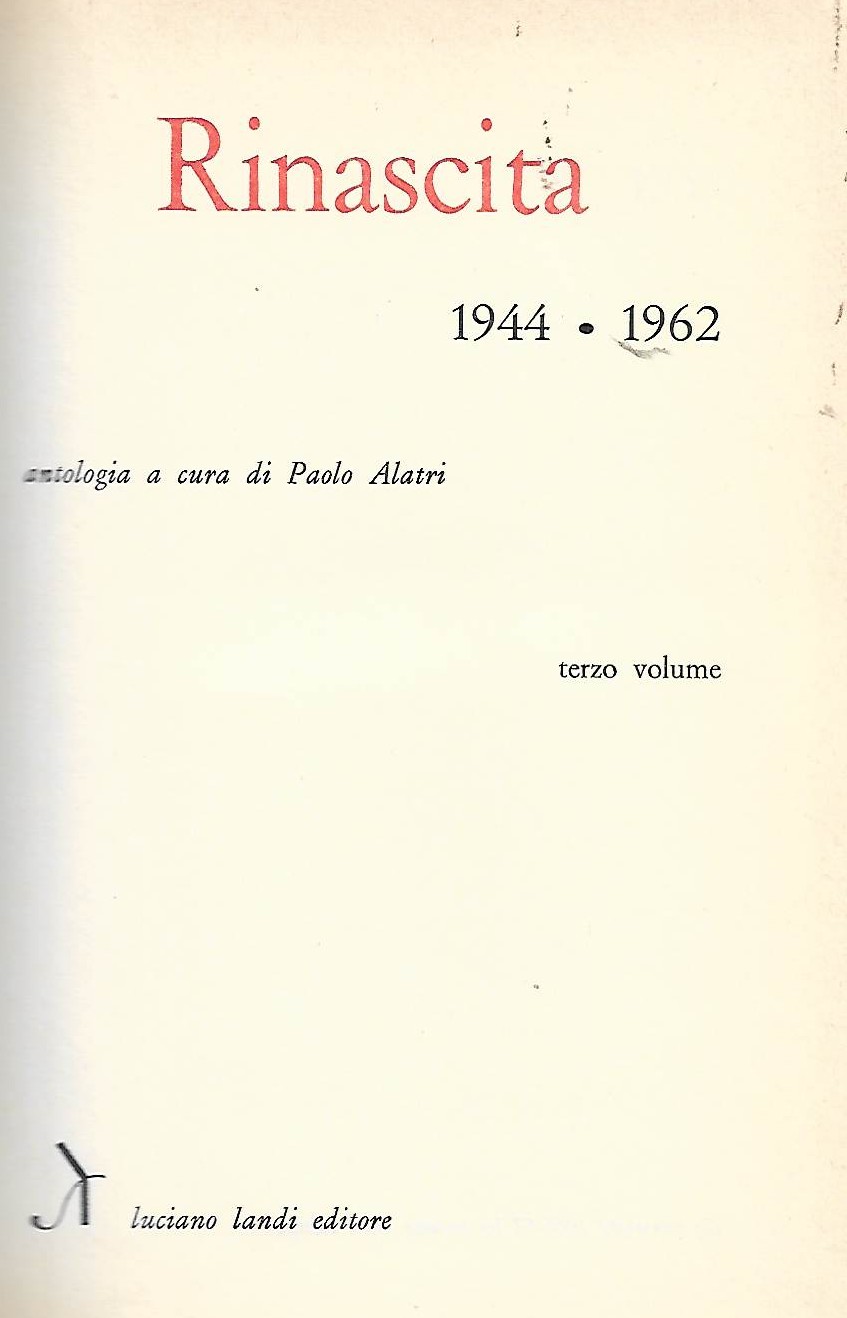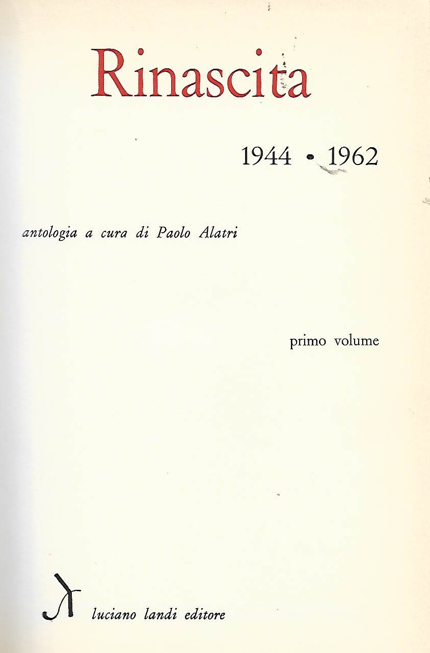 Rinascita : 1944-1962 : antologia - Volume 3PubblicazioneS. Giovanni Valdarno : L. Landi, 1967Descrizione fisica969-1431 p. ; 24 cm Ricerca Tematica: MOVIMENTO OPERAIO LAVORO N° inventario: 5730 BID code: SBL0552191 Collocazione: CA10A Sala: Salvarani (storia, biografie)RICHIESTA INFORMAZIONI CONDIVIDI SU
