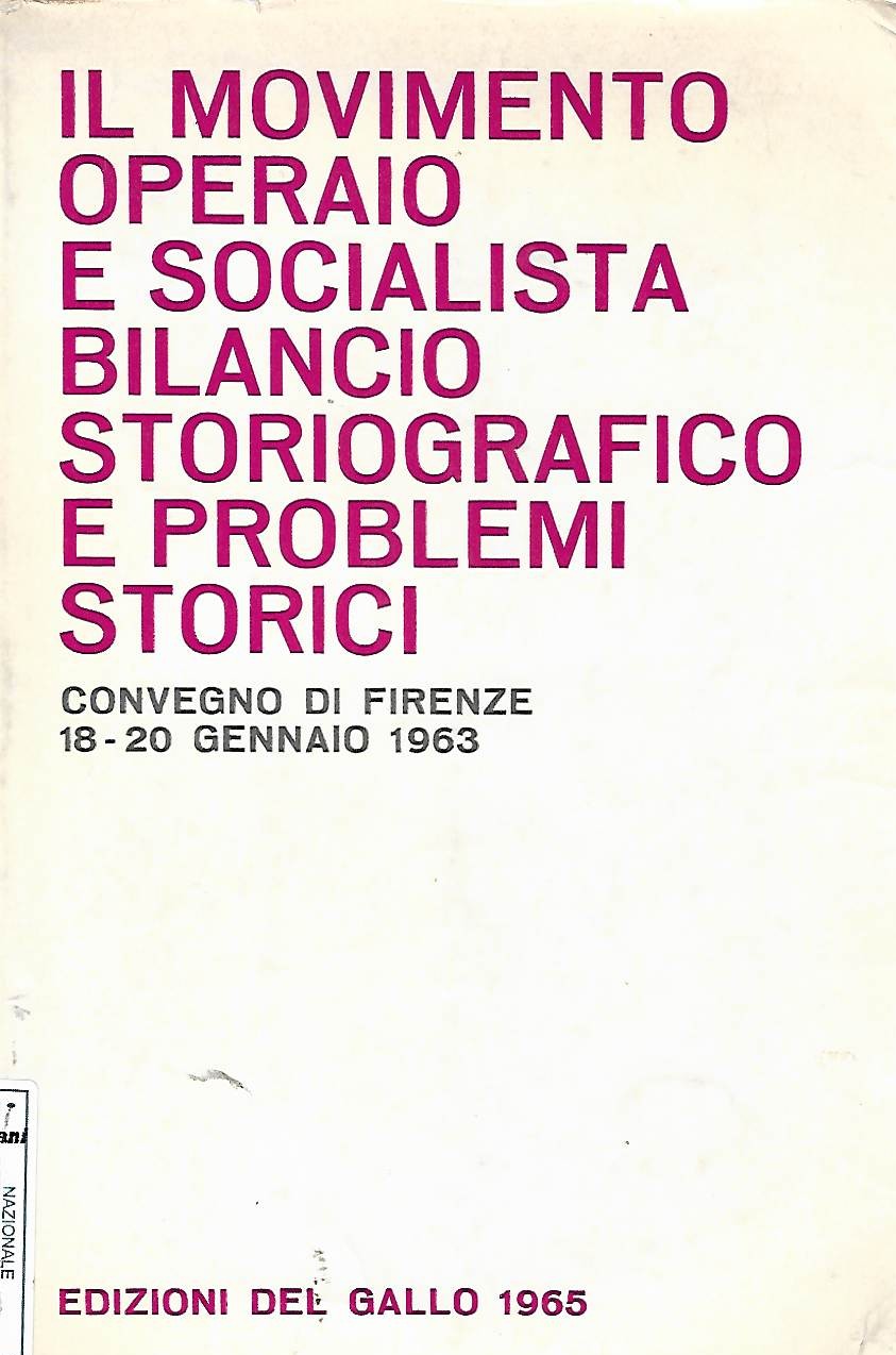 Il movimento operaio e socialista : bilancio storiografico e problemi storici : atti del Convegno promosso da Mondo operaio per il 70. del Partito socialista italiano : Firenze, 18-20 gennaio 1963PubblicazioneMilano : edizioni del Gallo, 1965Descrizione fisica372 p. ; 22 cm. .SoggettiSocialismo - ItaliaMovimento operaio - ItaliaClassificazione Dewey331.88 (16.) MOVIMENTO OPERAIO SINDACATI Ricerca Tematica: MOVIMENTO OPERAIO CONVEGNI SOCIALISMO N° inventario: 5744 BID code: SBL0267629 Collocazione: CA2B Sala: Salvarani (storia, biografie)RICHIESTA INFORMAZIONI CONDIVIDI SU