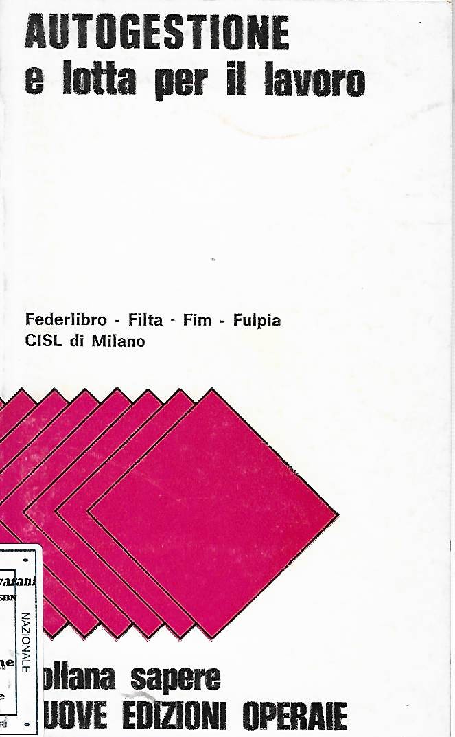 Autogestione e lotta per il lavoro / [A cura di Gianni Gini e Luciano Pero]PubblicazioneRoma : Nuove edizioni operaie, 1976Descrizione fisica191 p. : fig ; 19 cmNote generaliBasato sul convegno Autogestione operaia tenuto a Milano nel 1976. In testa al front.: Federlibro, FILTA, FIM, FULPIA, CISL di Milano Ricerca Tematica: MOVIMENTO OPERAIO LAVORO N° inventario: 5748 BID code: LIA0228226 Collocazione: CA7B Sala: Salvarani (storia, biografie)RICHIESTA INFORMAZIONI CONDIVIDI SU