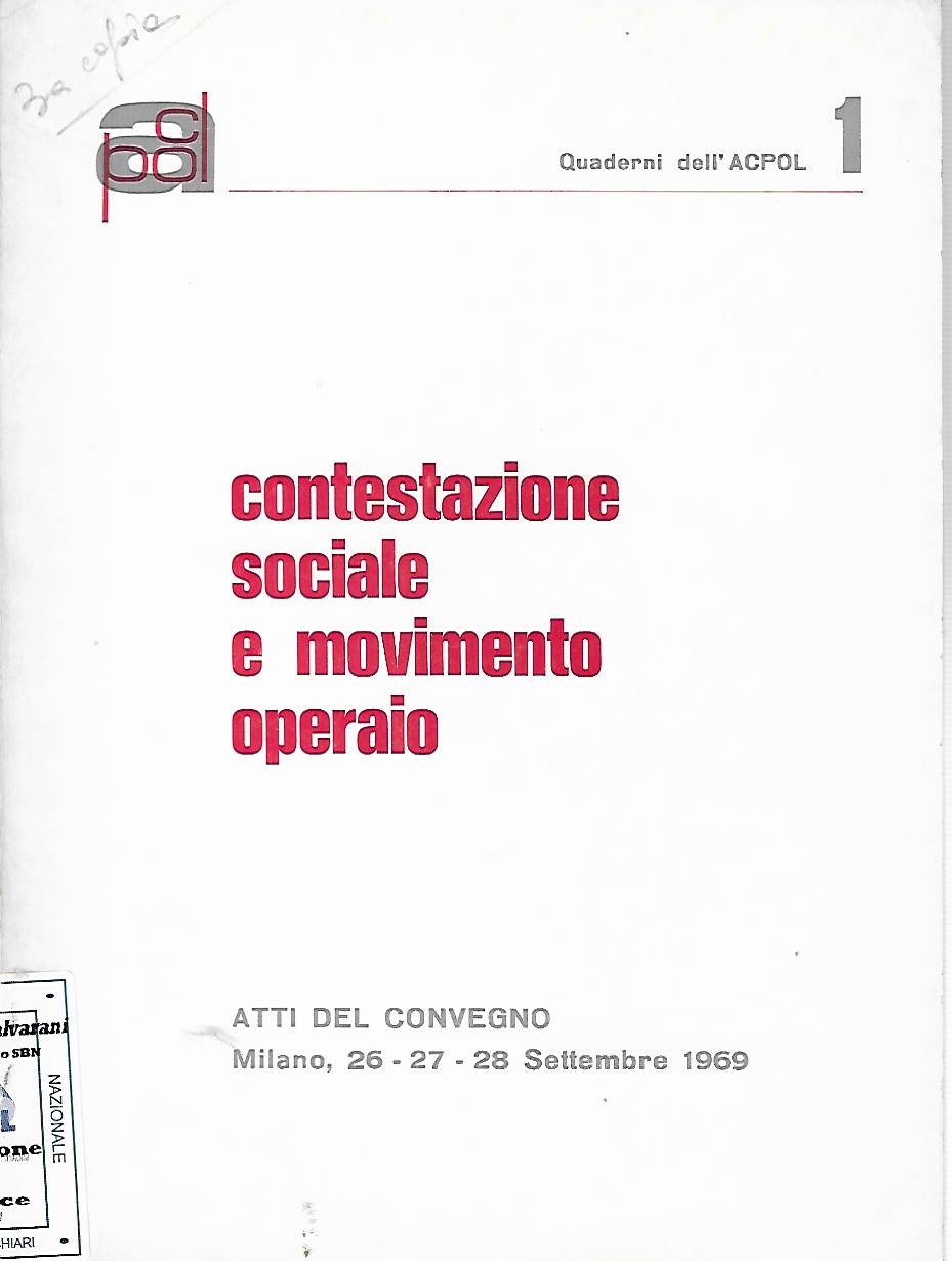 Contestazione sociale e movimento operaio : atti del Convegno : Milano, 26-27-28 settembre 1969PubblicazioneMilano : ACPOL, 1969Descrizione fisica117 p. ; 21 cmNote generaliTit. della copA cura di Relazioni socialiSoggettiMovimento operaioClassificazione Dewey331.88 (16.) MOVIMENTO OPERAIO SINDACATI331.88 (17.) MOVIMENTO OPERAIO SINDACATI Ricerca Tematica: MOVIMENTO OPERAIO SINDACATO N° inventario: 5758 BID code: SBL0089957 Collocazione: CA16B Sala: Salvarani (storia, biografie)RICHIESTA INFORMAZIONI CONDIVIDI SU
