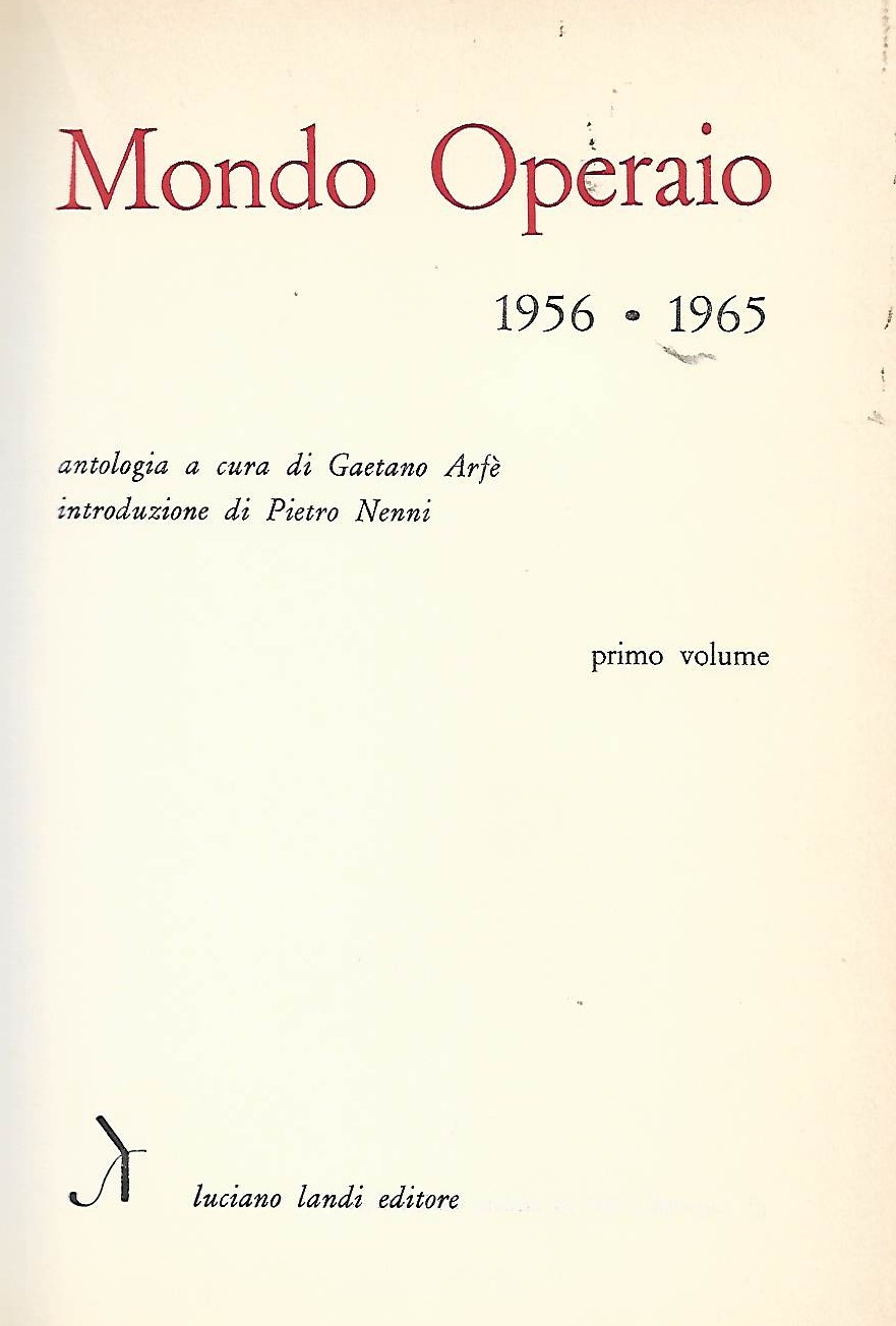Mondo operaio : 1956-1965 Volume 1Pubblicazione[San Giovanni Valdarno] : L. Landi, c1966Descrizione fisica592 p. ; 24 cm. Ricerca Tematica: MOVIMENTO OPERAIO LAVORO N° inventario: 5723 BID code: IEI0094869 Collocazione: CA9A Sala: Salvarani (storia, biografie)RICHIESTA INFORMAZIONI CONDIVIDI SU