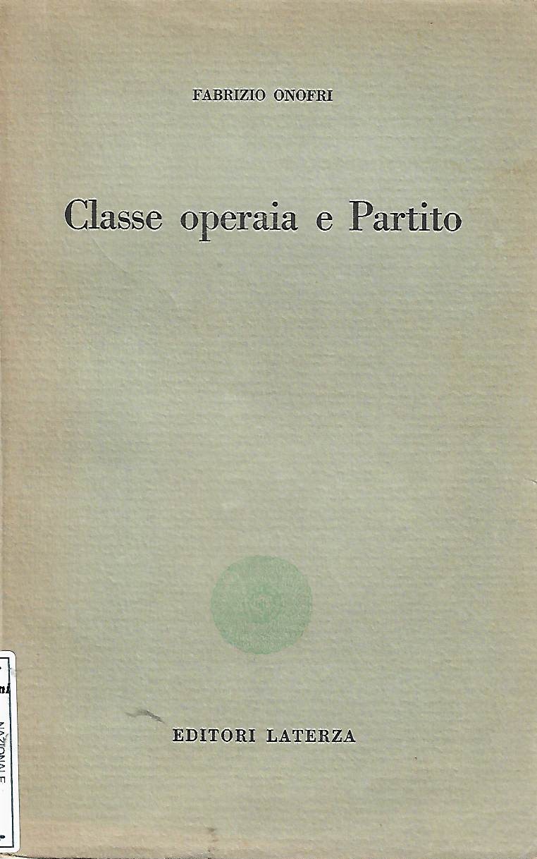 Classe operaia e partito / Fabrizio OnofriPubblicazioneBari : Laterza, 1957Descrizione fisica300 p. ; 21 cm.SoggettiPartito comunista italianoPartito comunista italiano - PolemichePartito comunista italiano - Politica sindacaleMovimento operaio - ItaliaClassificazione Dewey331.80945 (19.) Economia del lavoro. Sindacati, contrattazione e controversie collettive. Italia. Ricerca Tematica: MOVIMENTO OPERAIO SINDACATO LAVORO N° inventario: 5783 BID code: TO00310686 Collocazione: CA37B Sala: Salvarani (storia, biografie)RICHIESTA INFORMAZIONI CONDIVIDI SU