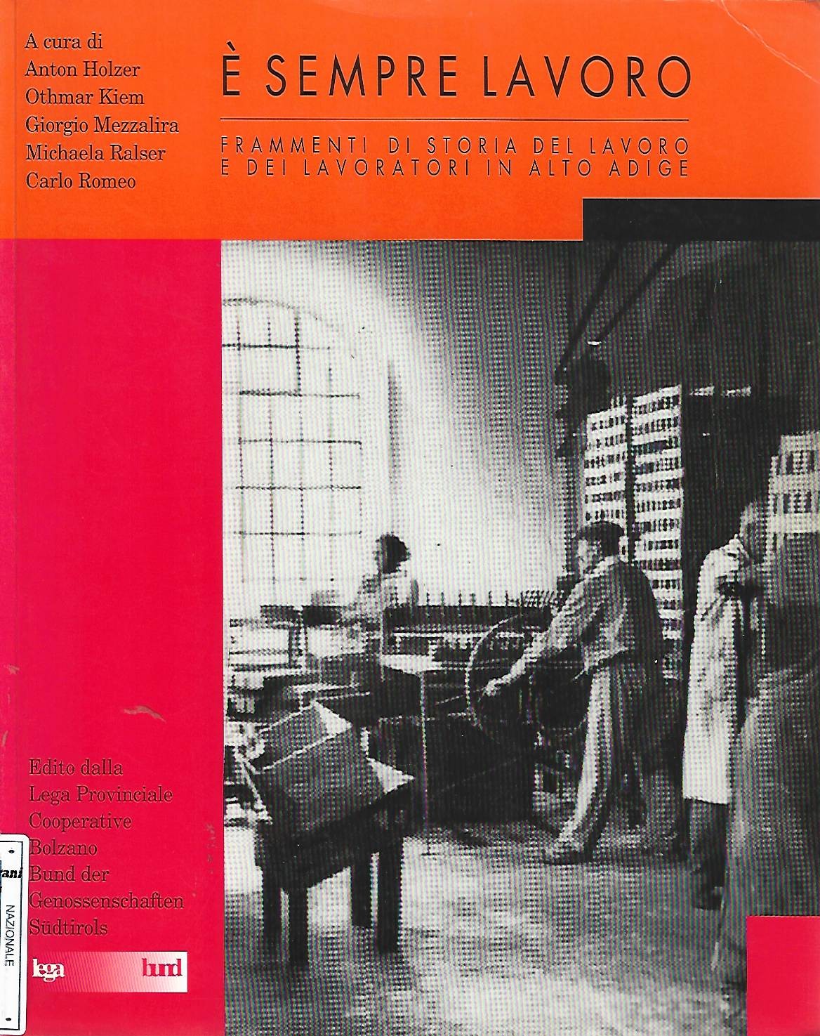 E’ sempre lavoro : frammenti di storia del lavoro e dei lavoratori in Alto Adige / a cura di Anton Holzer ... [et al.]Pubblicazione[S.l.] : Lega provinciale delle cooperative Bolzano, c1991Descrizione fisica288 p. : ill. ; 25 cm.SoggettiLavoratori - Trentino Alto Adige - Sec. 19.-20. - FotografieLavoro - Trentino Alto Adige - Storia Ricerca Tematica: MOVIMENTO OPERAIO STORIA LAVORO N° inventario: 5901 BID code: UBO3936247 Collocazione: CA15D Sala: Salvarani (storia, biografie)RICHIESTA INFORMAZIONI CONDIVIDI SU